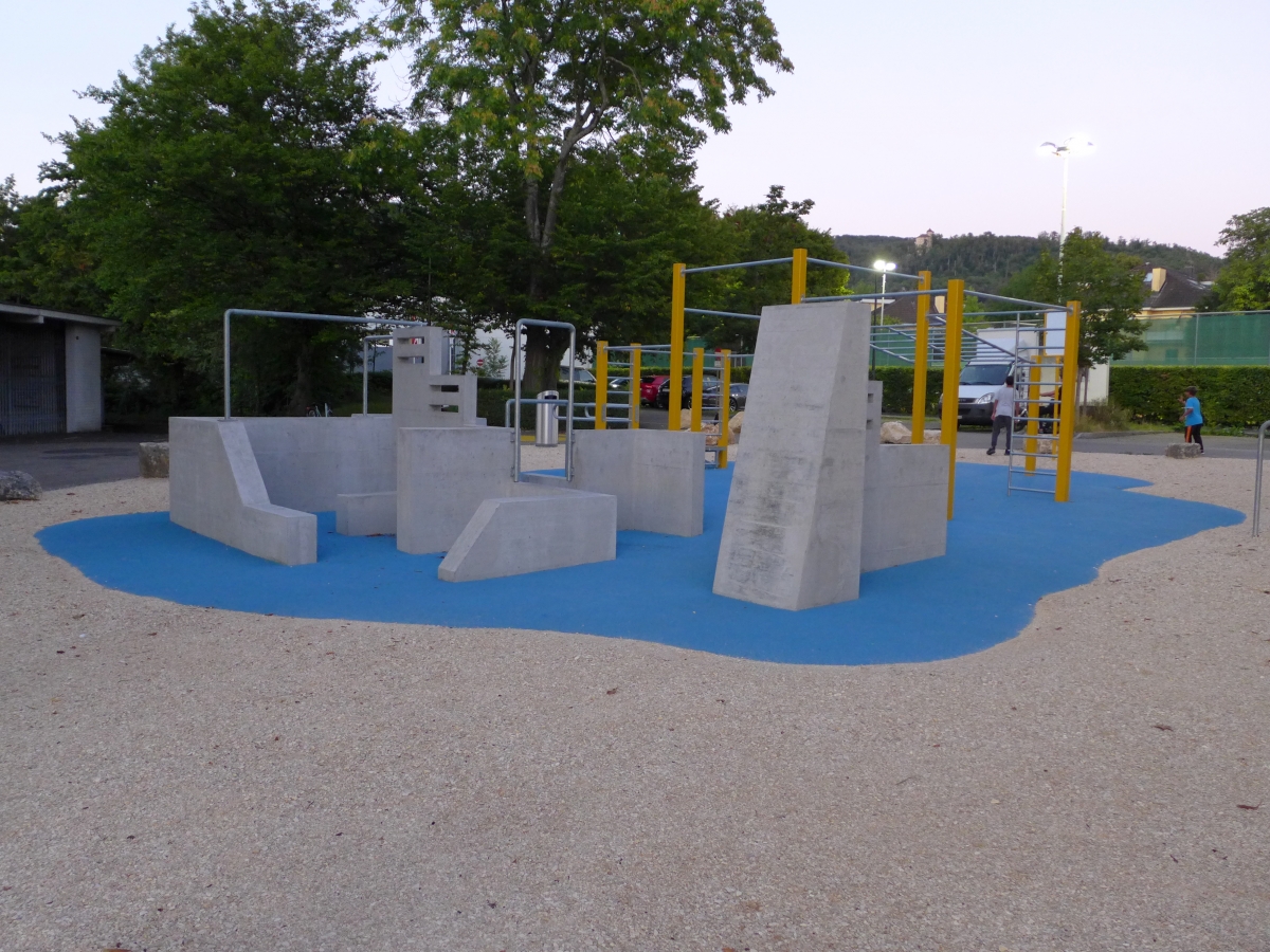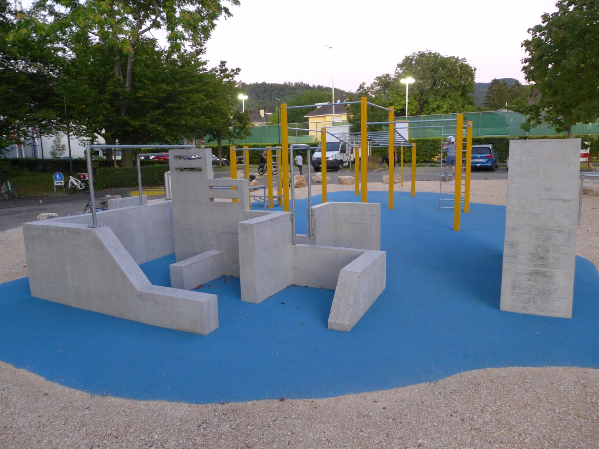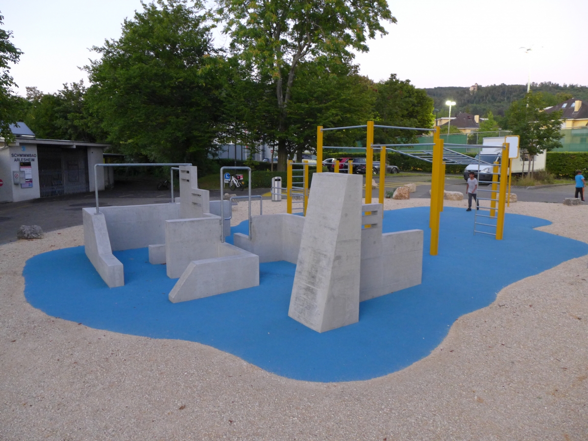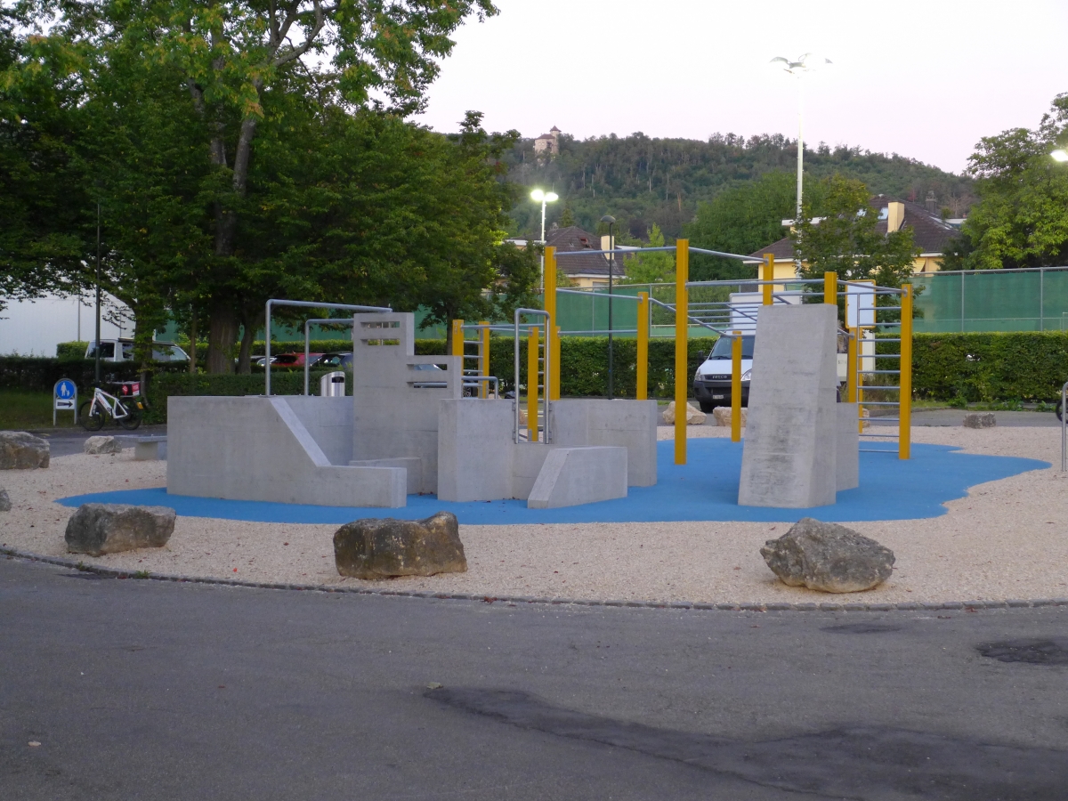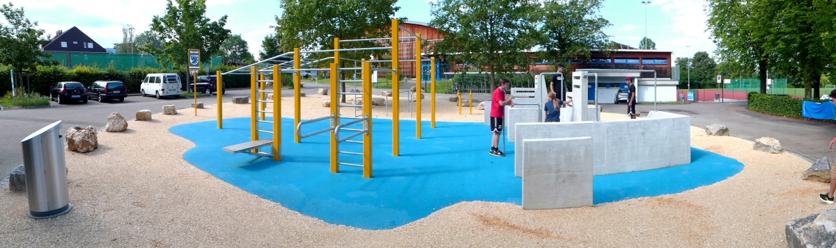 Nachdem im Sommer 2019 der neue Skatepark mit Granit-Elementen und einer Microrampe eröffnet wurde, durfte nun die Street Workout und Parkour Anlage mit Slackline auf der Grünfläche vor dem Eingang des Schwimmbades eröffnet werden. Auf der Street Workout Anlage kann man Übungen mit dem Eigengewicht ausführen. Auf der Parkour Anlage werden akrobatische Sprünge zwischen Mauern und Stangen ausgeführt. Die Parkour Anlage wurde vom aktuellen Parkour Weltmeister und Ninja- Profi Chris Harmat in Zusammenarbeit mit Paul Heuberger von der Vertical Technik AG entwickelt. Sie ist die erste Parkour Anlage in der Region, welche für Anfänger und Fortgeschrittene Sportler konzipiert wurde. Im Bereich der beiden Anlagen wurde ein Fallschutzbelag aus EPDM Gummi installiert.