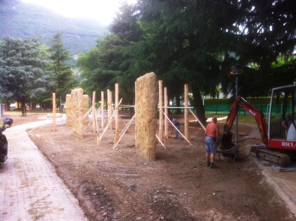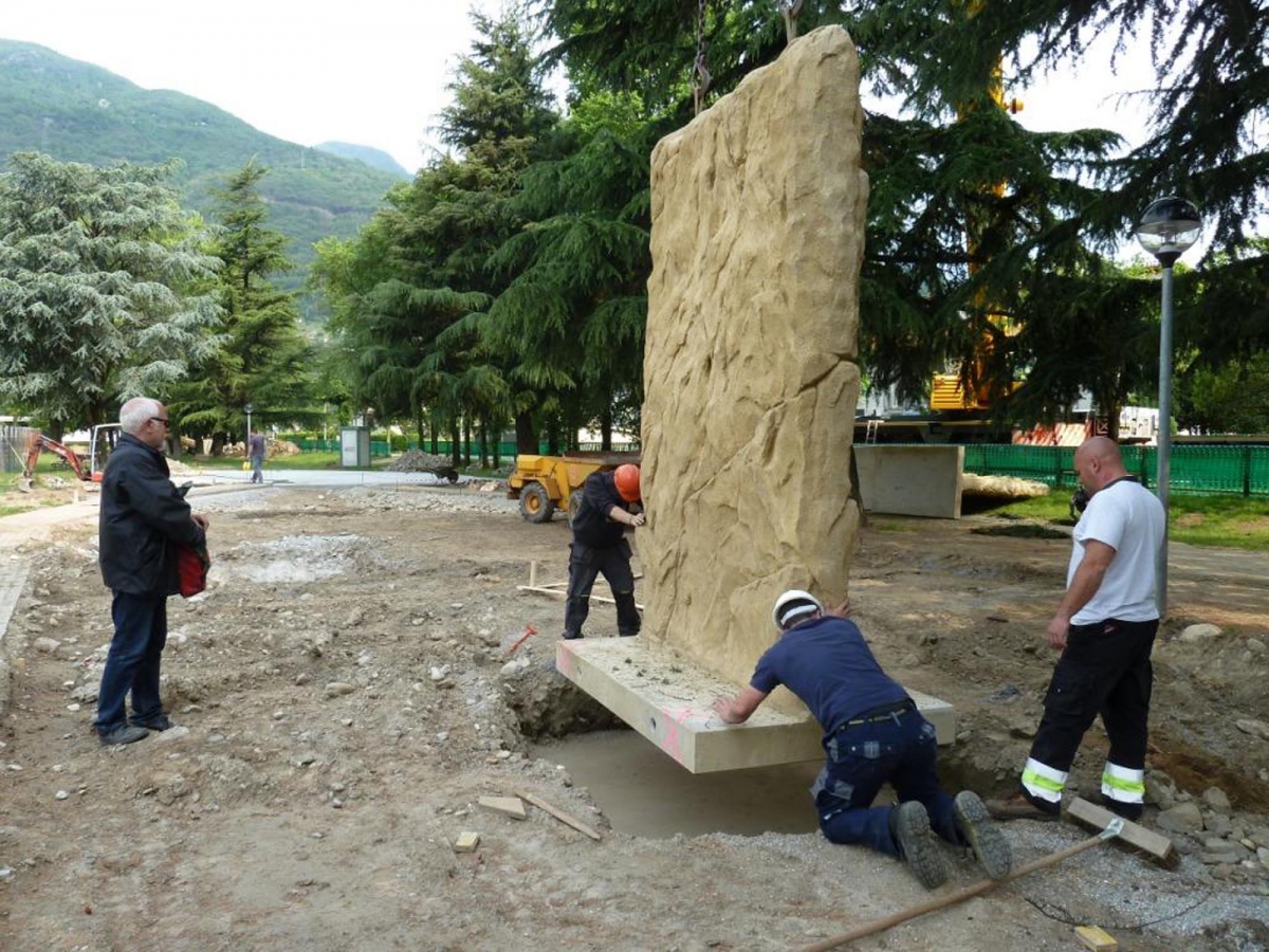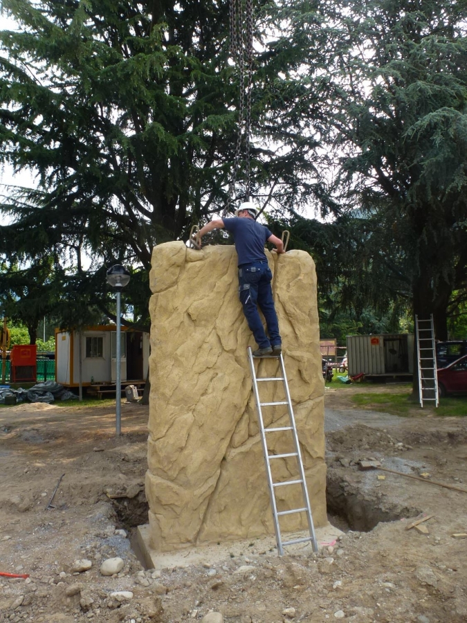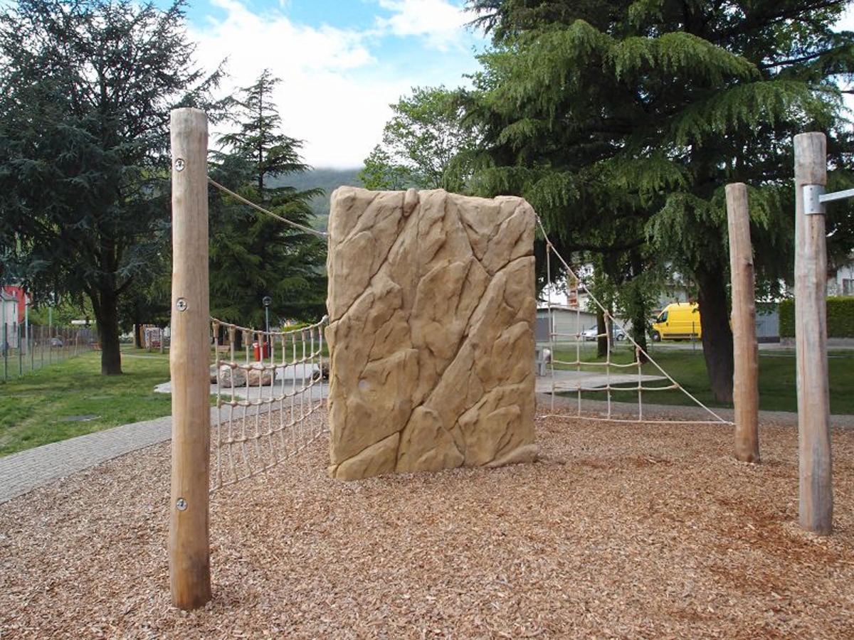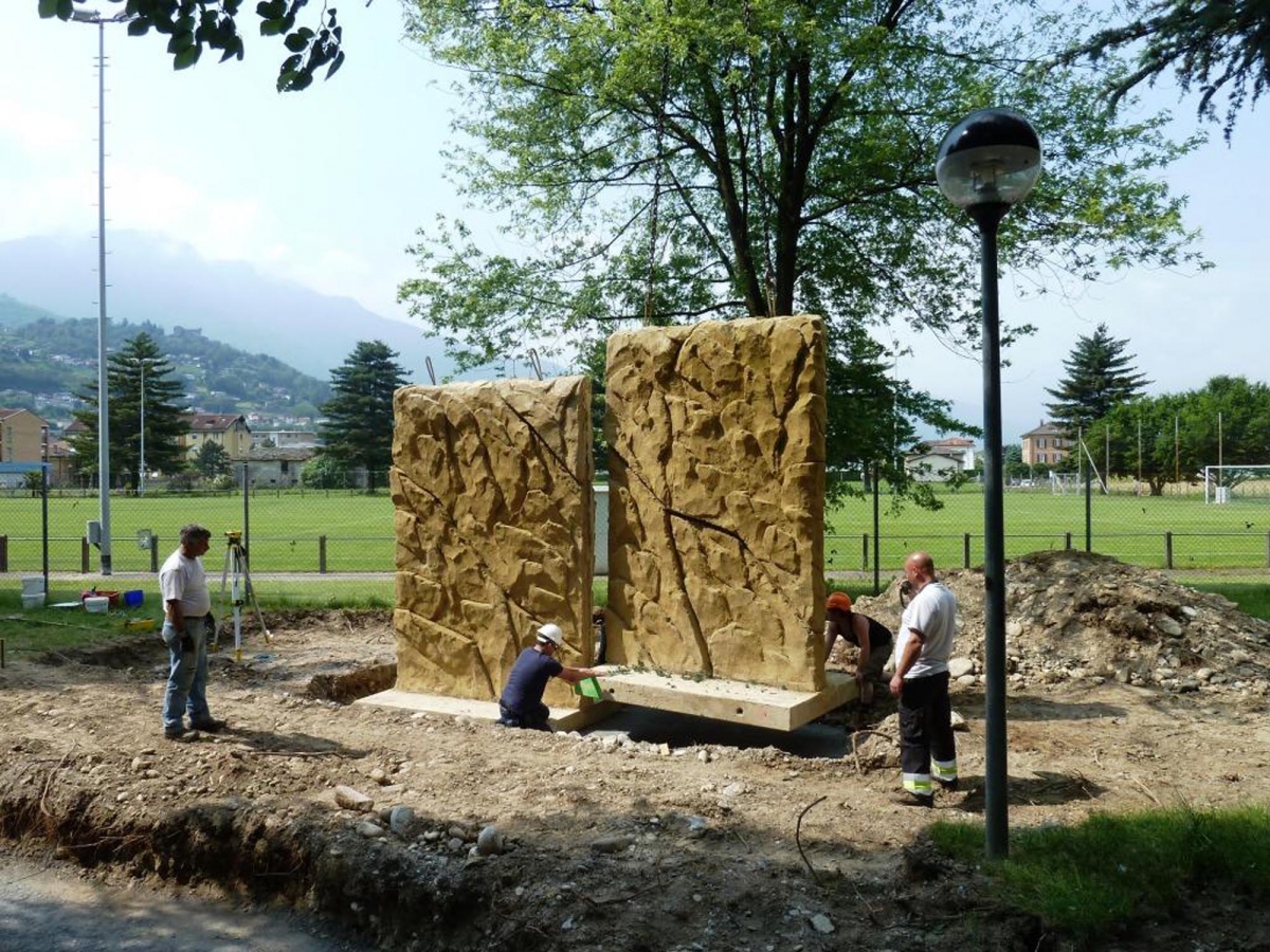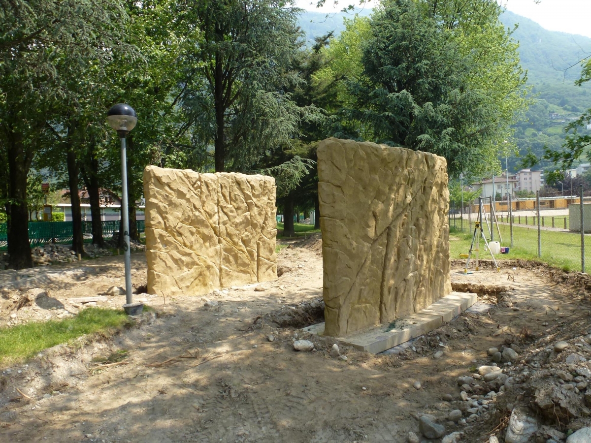 Am 5. Juni 2013 war es soweit, unweit des Fussballplatzes an der Via Gerretta, wurden sieben vorgefertigte Beton-Kletterwände mit naturnaher Felsstruktur installiert.