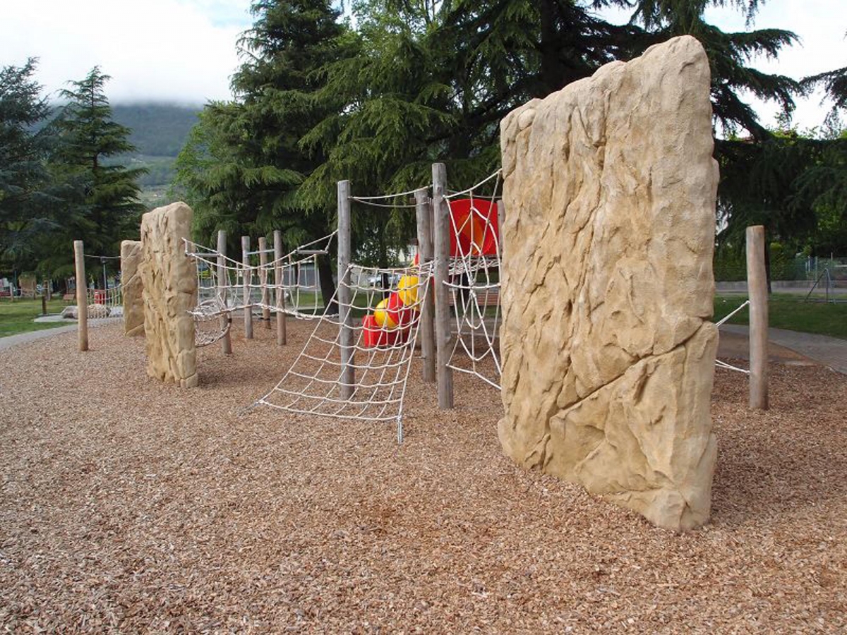 Alle Elemente sind beidseitig bekletterbar und teilweise mit Seilen und anderen Spielgeräten verbunden. Die Oberflächen der Kletterstrukturen wurden ohne künstliche Klettergriffe ausgeführt. Die von Hand modellierten Ritzen, Spalten und Felsvorsprünge stellen ideale Griffe und Tritte dar, um mit Schuhen oder Barfuss zu klettern. Die Fallschutzzonen wurden mit Kies oder Holzschnitzel nach den Vorgaben der BfU realisiert. Die Boulderwände sind je 3 m hoch und je 2.20 m breit. Sie können öffentlich ohne Aufsicht betrieben werden.