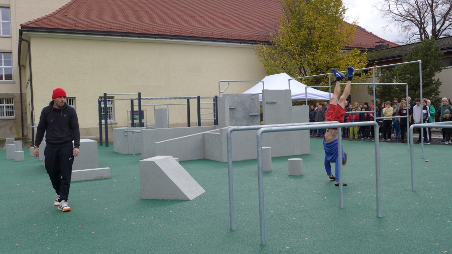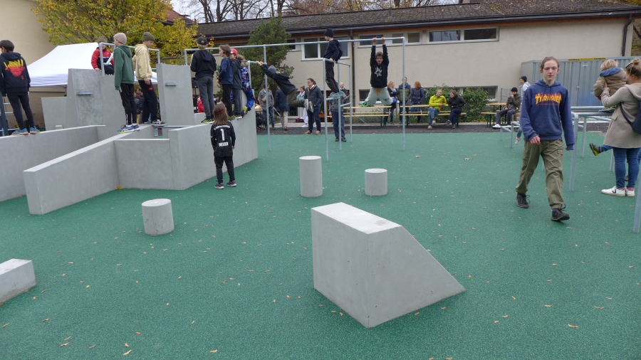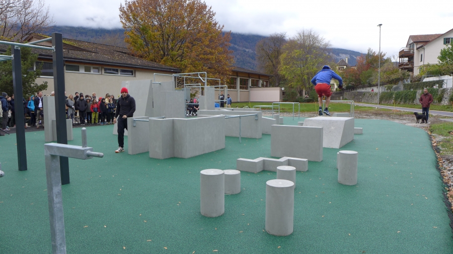 Vom Klimmzug an der Street Workout bis zum Riesen Sprung an den Parkour Anlagen ist alles möglich. «Der Hintergarten Quader-Montalin wurde zum Treffpunkt für alle sportbegeisterten Churer und Churerinnen, die sich gerne bewegen oder einfach nur zuschauen möchten.»