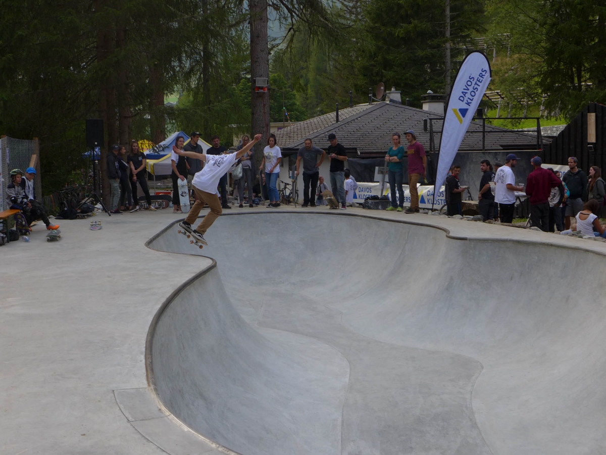 Von der Idee bis zur Entstehung dauerte es 6 Jahre, doch Anfangs August 2019 wurde aus dem Projekt «Bowl in Davos» Realität in Form von Zement, Stahl- und Pool-Copings.