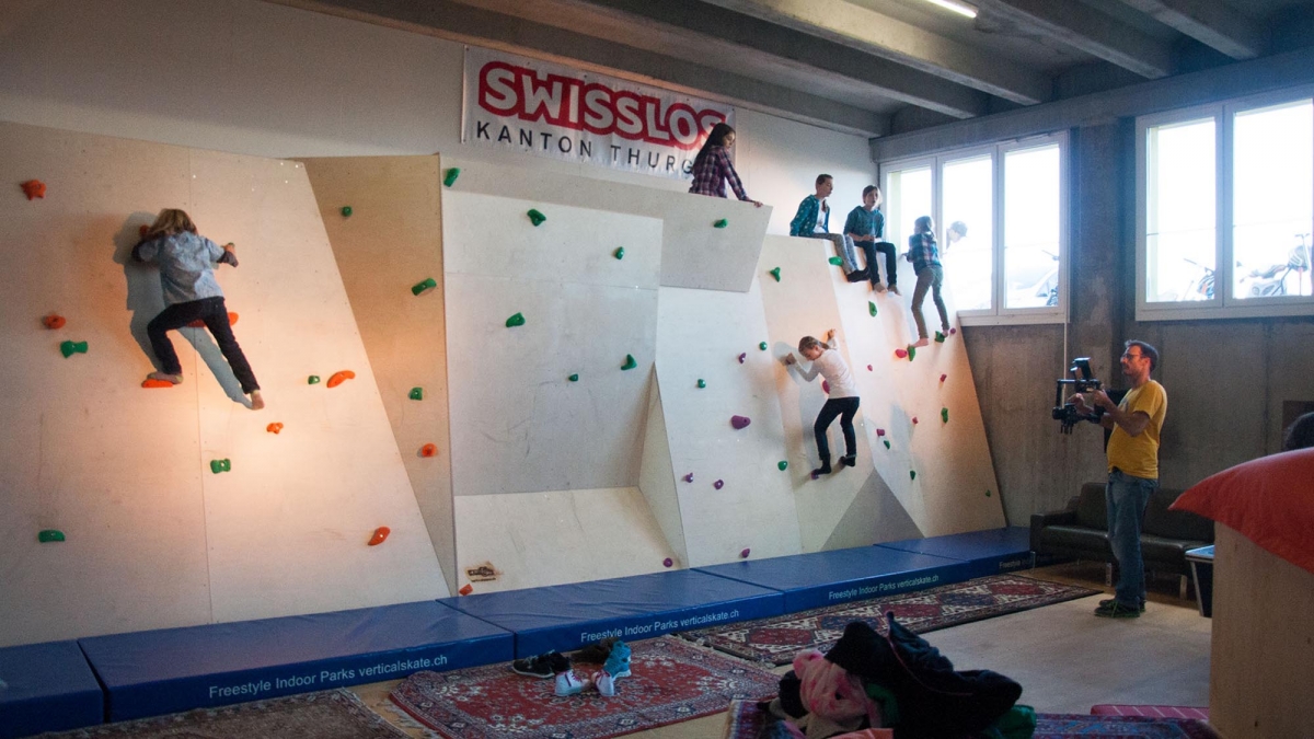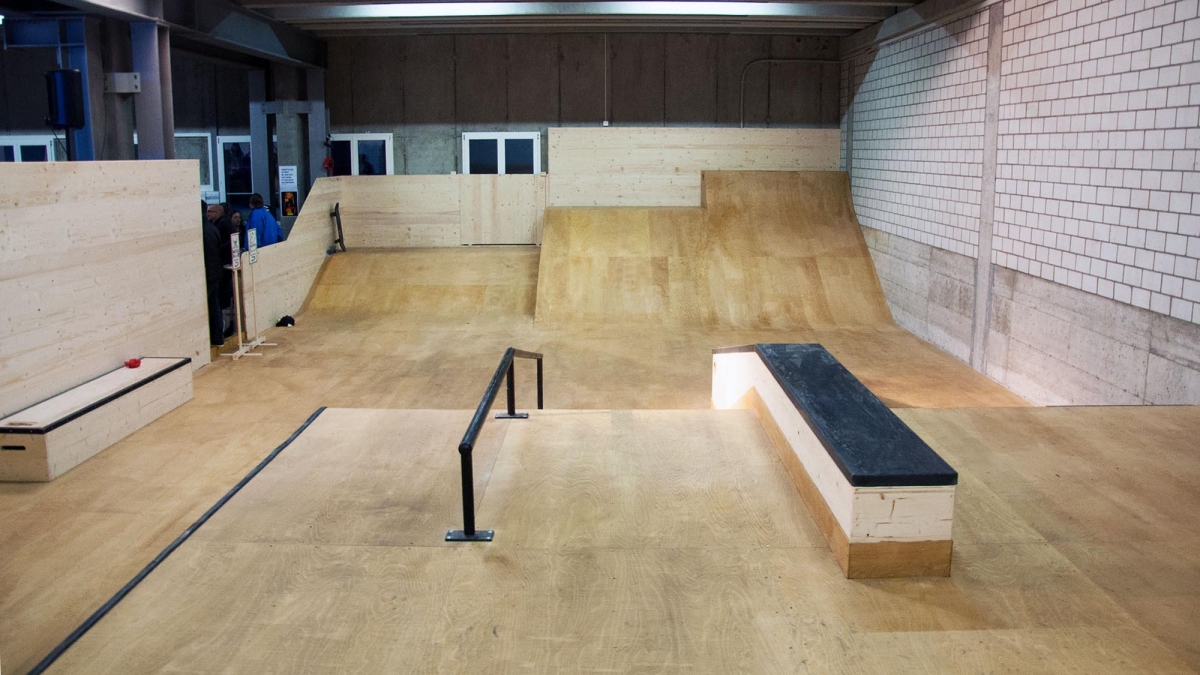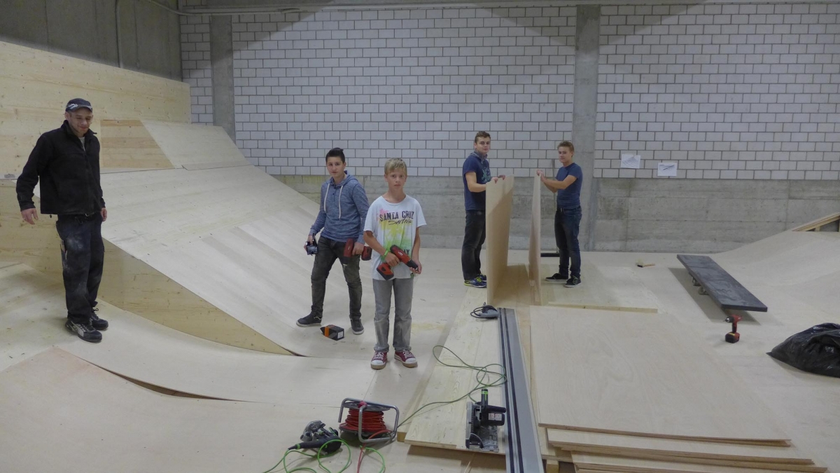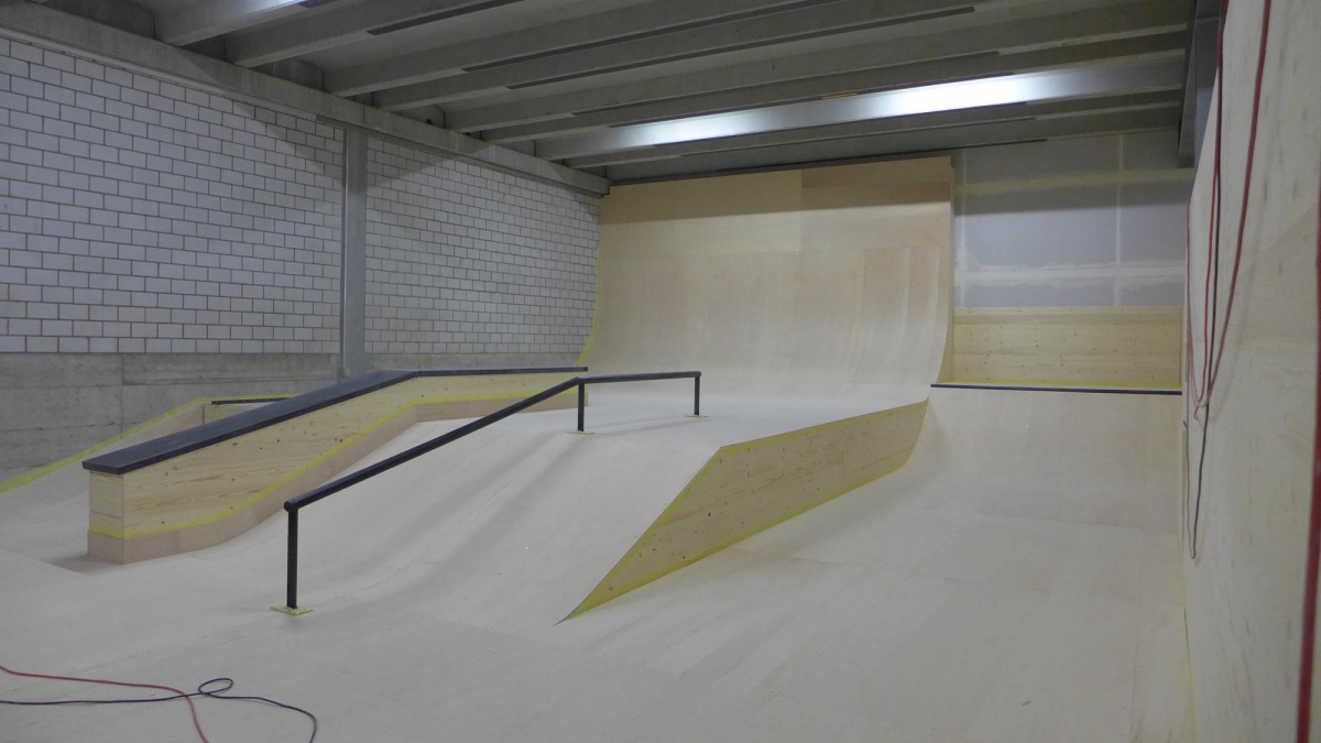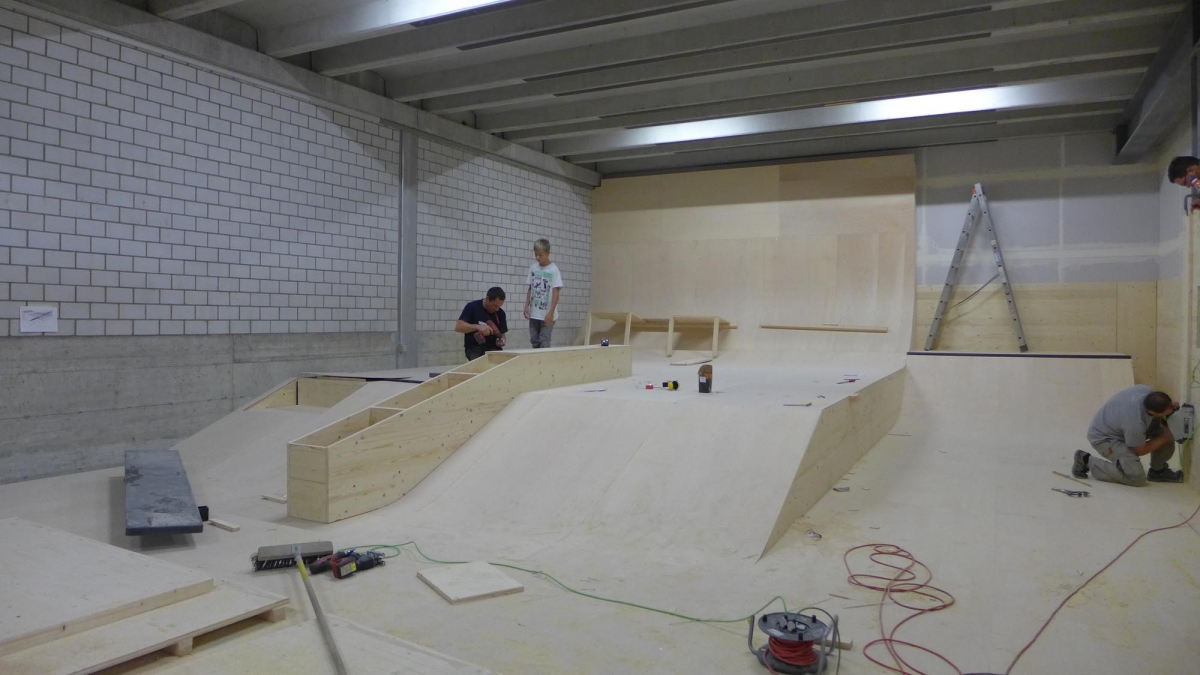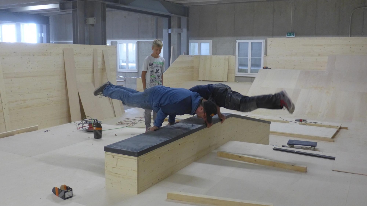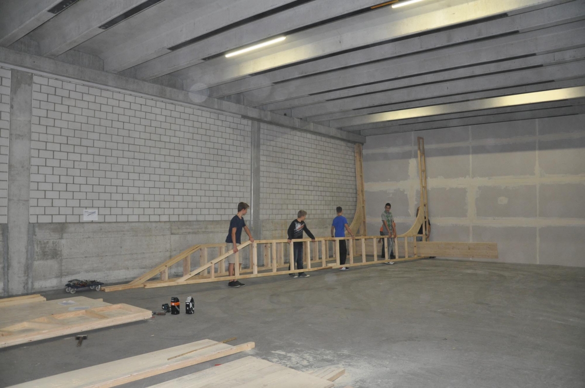 Zu bestaunen gab es einiges. Der Jugendtreff besteht aus einem Skatepark mit Street und Minirampe, sowie einer mobilen Konzertbühne die auf der Minirampe aufgebaut werden kann. Das innovative an dieser Konzert Bühne ist, dass sie so konzipiert wurde, dass sie von den Jugendlichen selber auf- und abgebaut werden kann. Die Bühnenelemente sind mobil und lassen sich in einer Schublade unter der Minirampe versorgen. Auch die Boulderwand erfreut sich grosser Beliebtheit, wie einige Bilder der Eröffnung zweifellos zeigen.