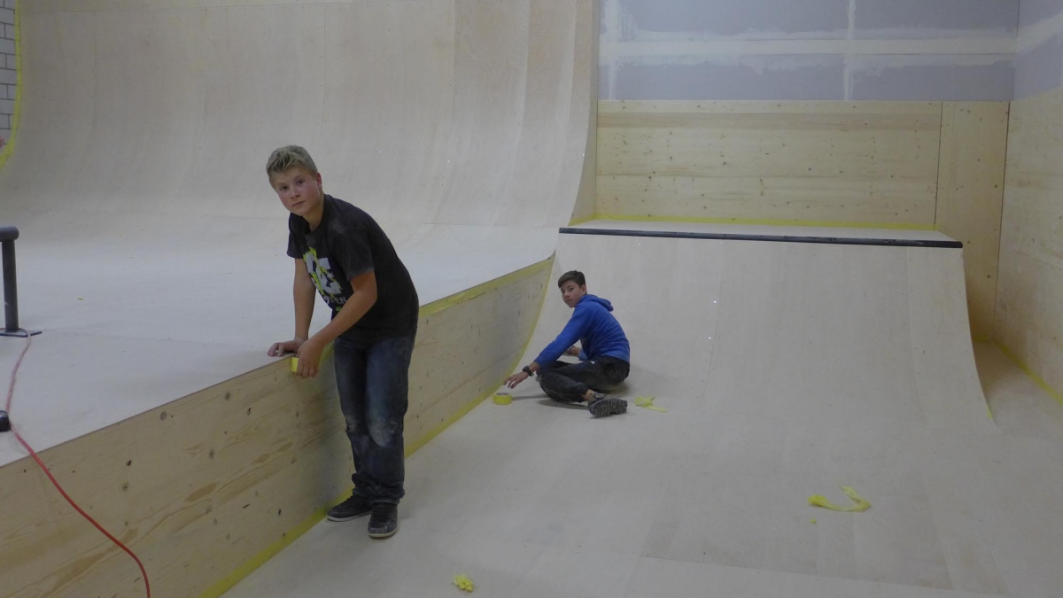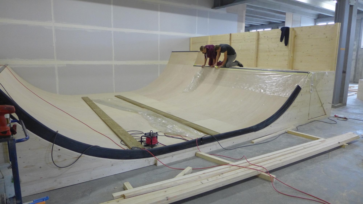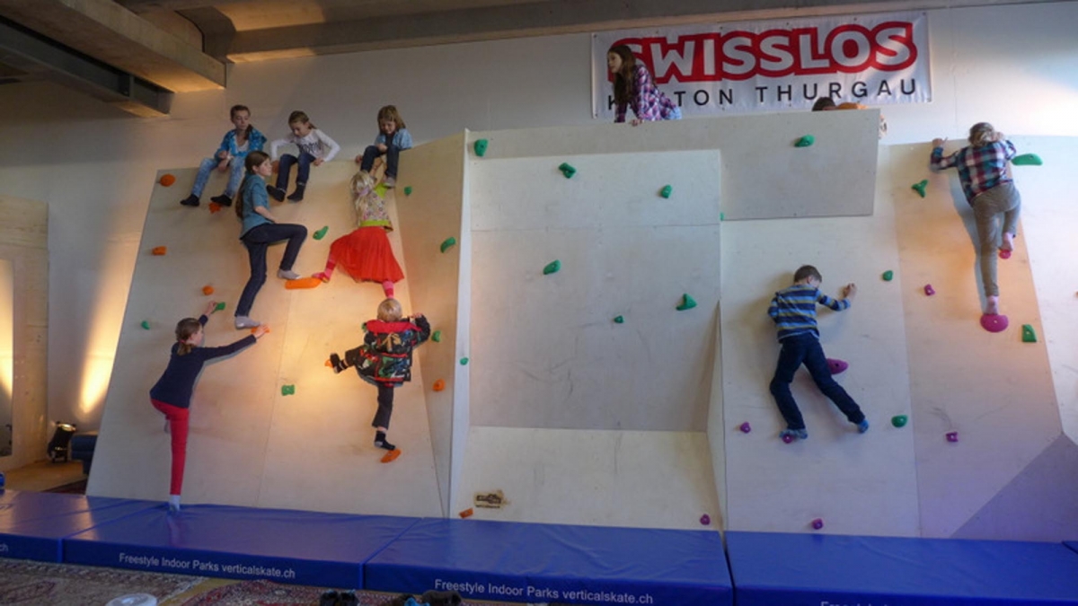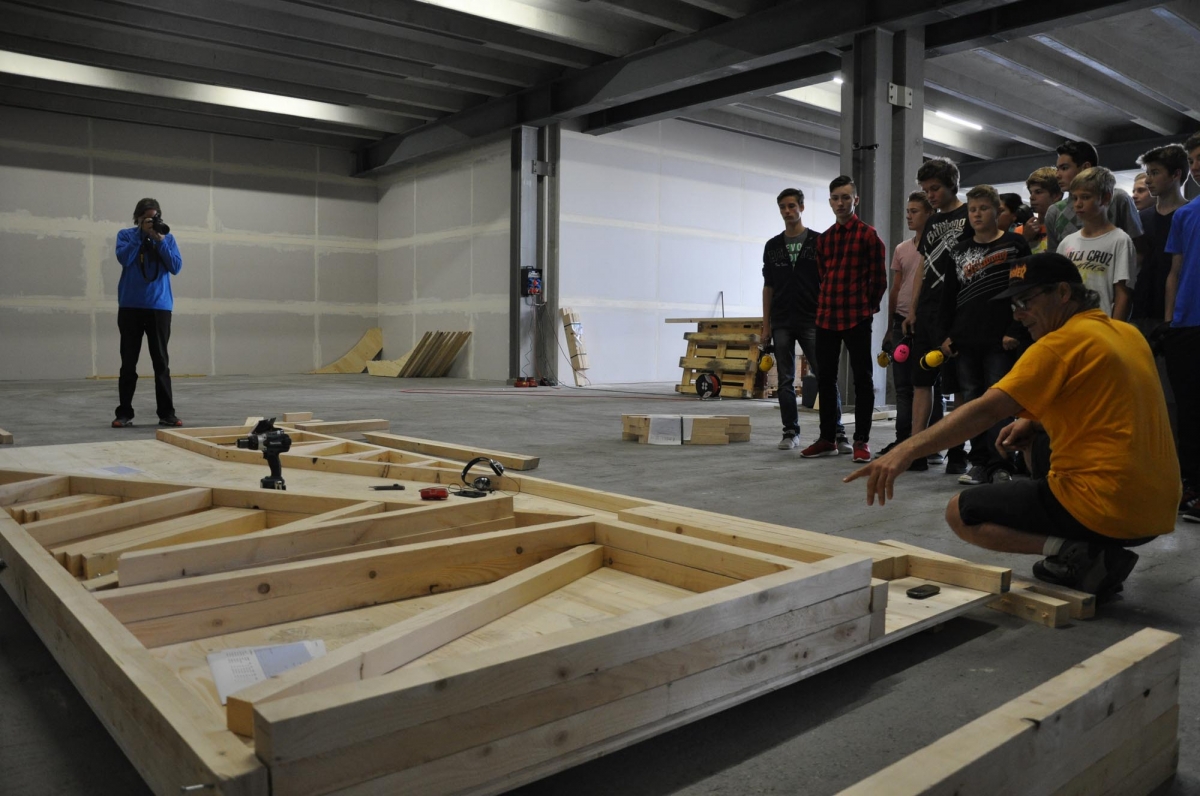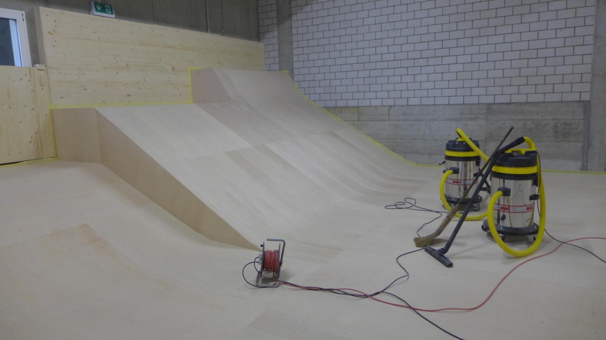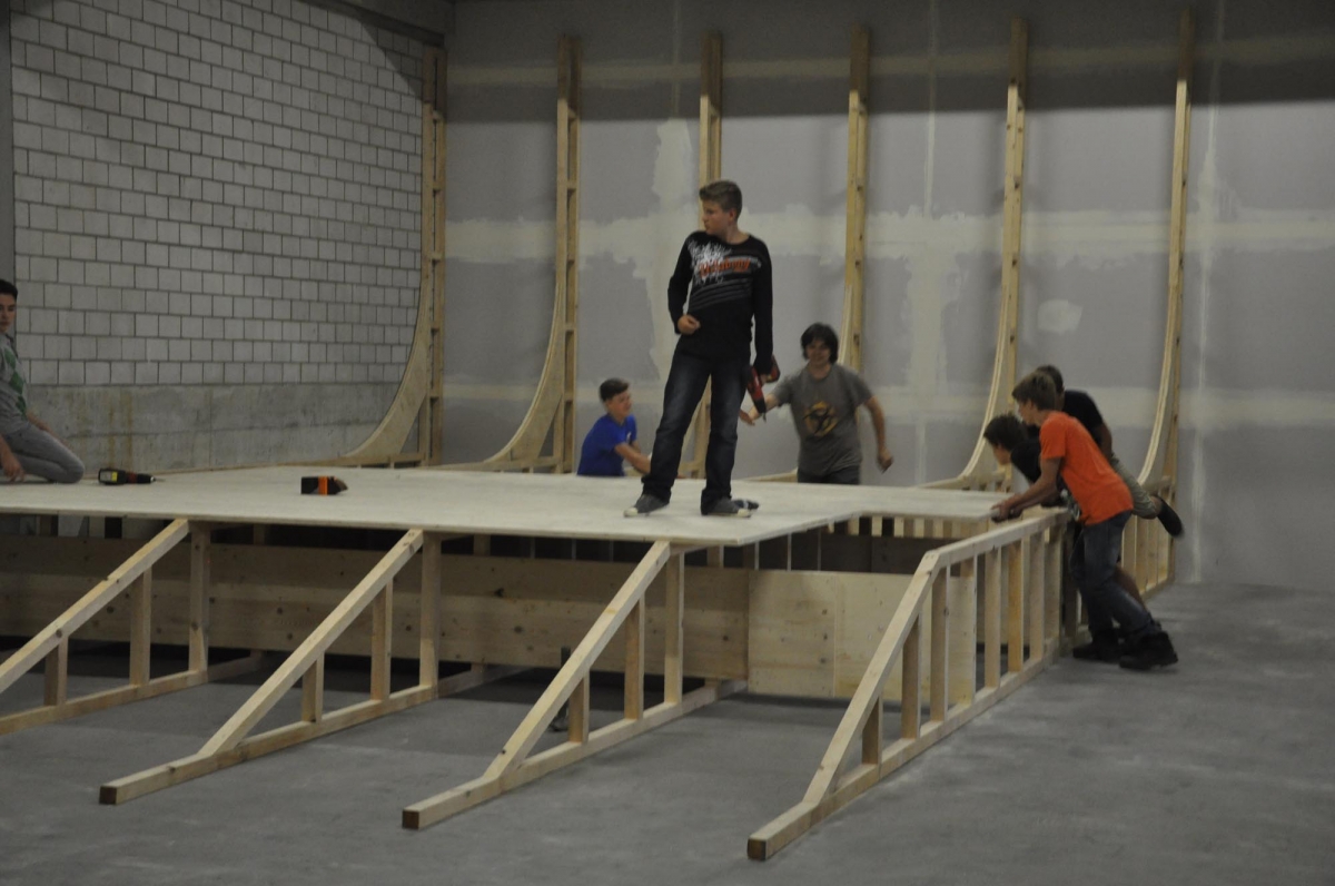 Zu bestaunen gab es einiges. Der Jugendtreff besteht aus einem Skatepark mit Street und Minirampe, sowie einer mobilen Konzertbühne die auf der Minirampe aufgebaut werden kann. Das innovative an dieser Konzert Bühne ist, dass sie so konzipiert wurde, dass sie von den Jugendlichen selber auf- und abgebaut werden kann. Die Bühnenelemente sind mobil und lassen sich in einer Schublade unter der Minirampe versorgen. Auch die Boulderwand erfreut sich grosser Beliebtheit, wie einige Bilder der Eröffnung zweifellos zeigen.