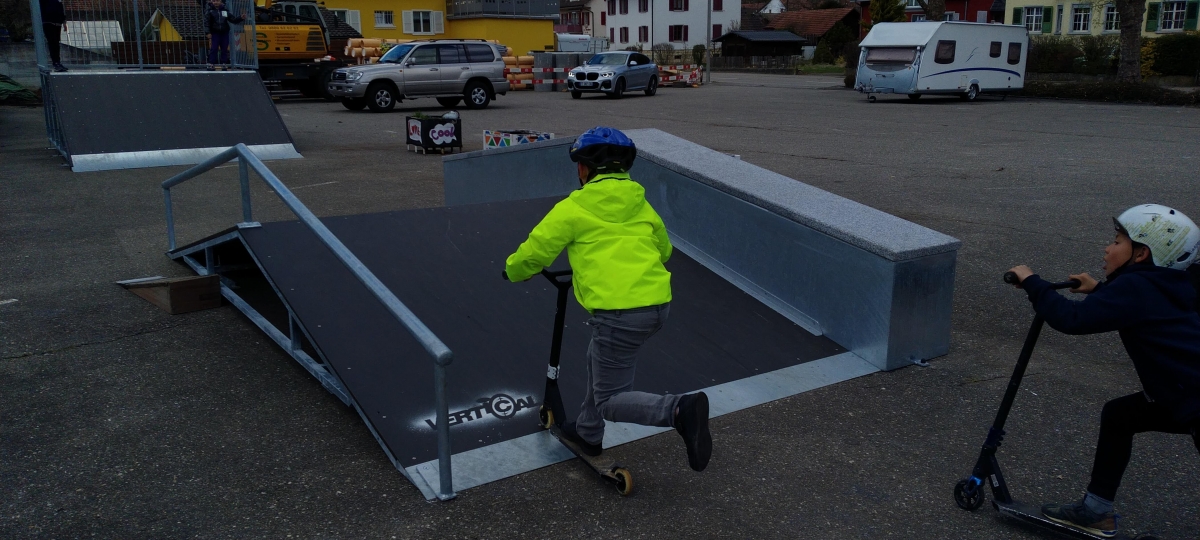 In der Gemeinde Kleinlützel im solothurnischen Schwarzbubenland hat sich eine Gruppe Eltern unter dem Namen Jugendraum für eine Skateranlage eingesetzt. Bisher gab es in Kleinlützel mit drei Spielplätzen ein grosses Angebot für Kinder, doch für Jugendliche fehlte eine passende Infrastruktur, weshalb sich diese mit selbstgebastelten Anlagen aushalfen, was auf Dauer ein unbefriedigender Zustand war. Die Eltern stellten ihr Anliegen dem Gemeinderat vor und holten bei Vertical Technik AG eine Offerte ein. Trotz kritischen Stimmen wurde das Anliegen schlussendlich angenommen. Die kleine Anlage beim Parkplatz vor der Dorfkirche besteht aus einer Quaterpipe, einer Bank und einer Roof Box. Der Skatepark wird von den Jugendlichen bereits viel genutzt.