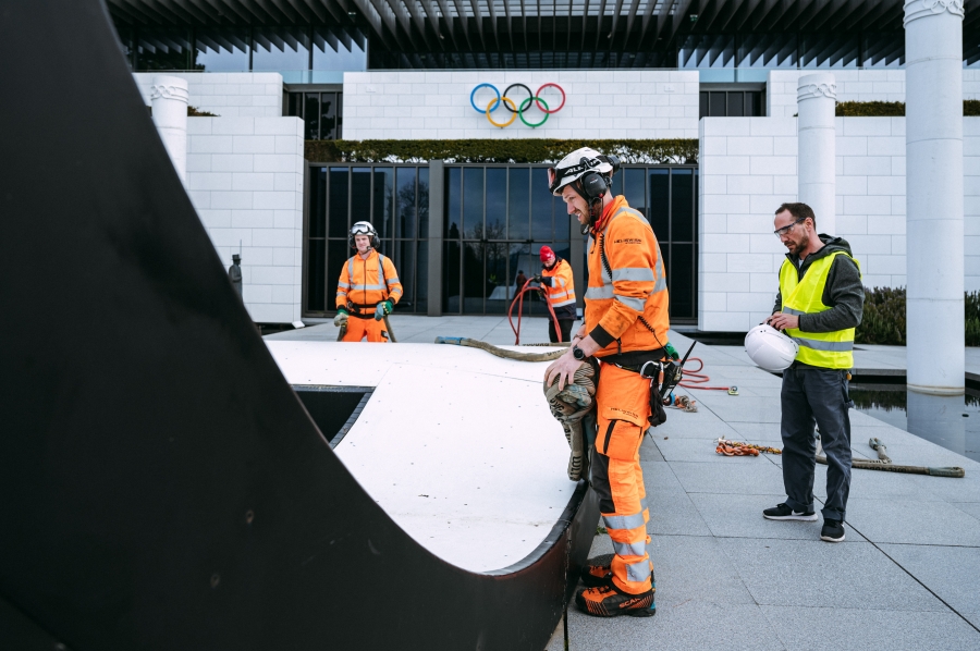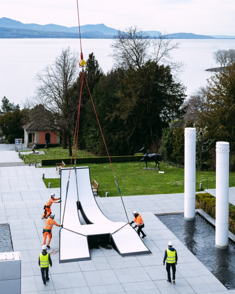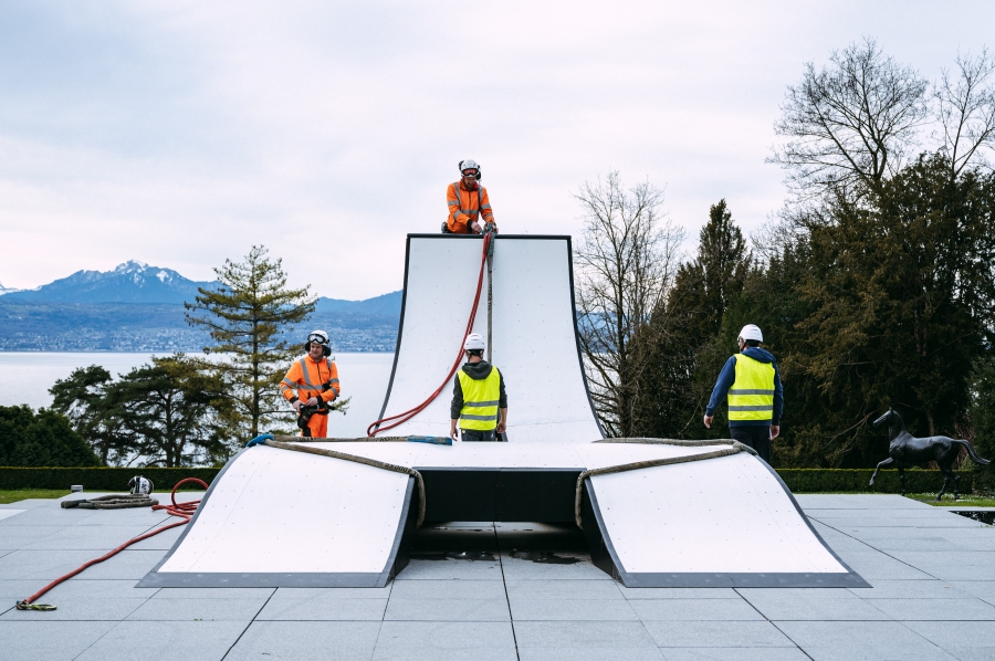 Nachdem die Skulptur „A new Chapter“ Juni 2021 vor dem Haupteingang des olympischen Museums in Lausanne stand, wurde sie am 13. März 2023 per Helikopter zum neuen Standort beim Skatepark in Vidy abtransportiert.