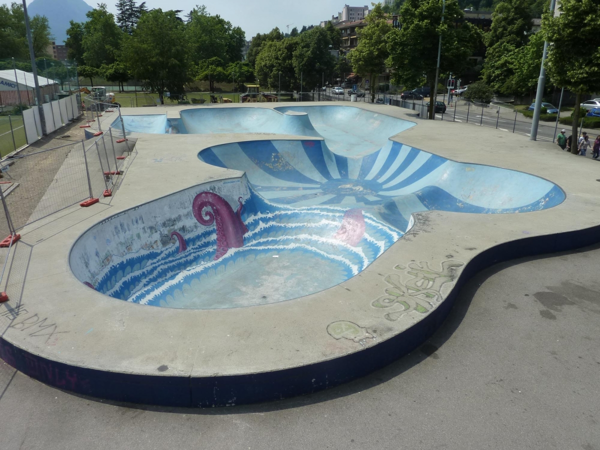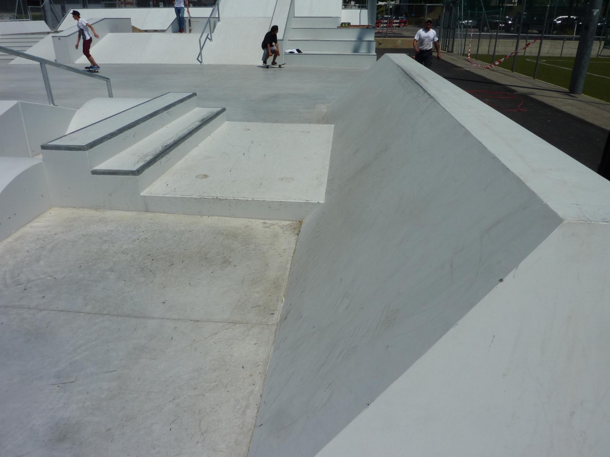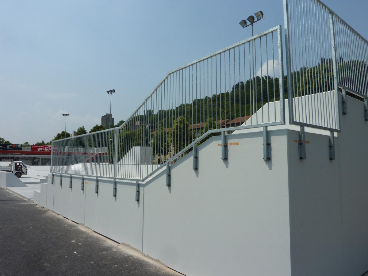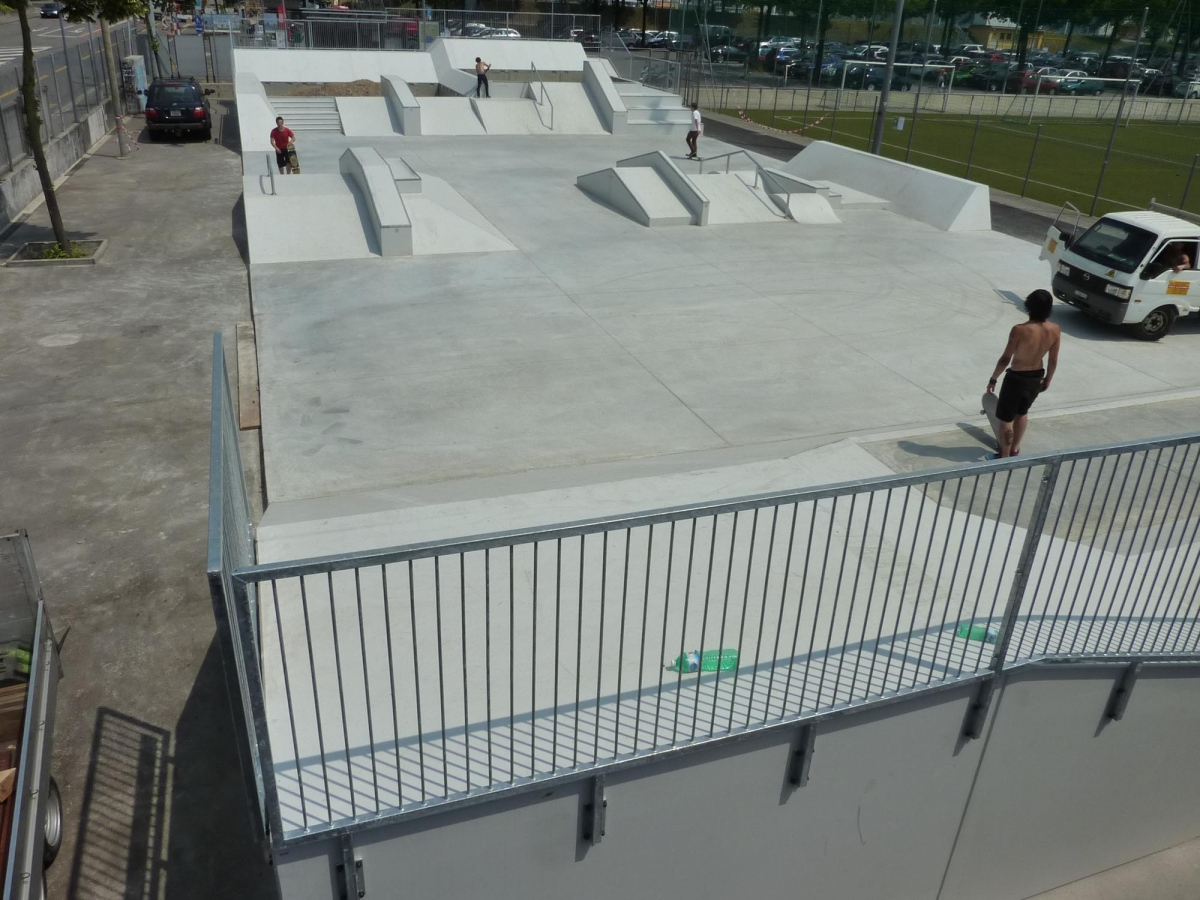 Vertical Technik AG hat einen Beton Skatepark mit Beton Elementen von SkateStone in Lugano neben dem existierenden Bowl Skatepark erstellt. Das Design wurde von Yari Kopt von den Warriors www.warriorsskateboards.com gezeichnet. Der Auftrag ging Anfangs Februar 2011 ein und nur 4 Monate später stand der Skatepark zum shredden bereit. Eine Glanzleistung der deutschen Firma Hofmann Betonteile GmbH aus Elsenfeld, dem Hersteller der Elemente. Ein großes Kompliment auch an die Mannschaft in der Produktion und an die Monteure die vollen Einsatz gebracht haben. Wie der Architekt Armando Dorici bestätigt ist die Qualität der Elemente vom feinsten. Die Betongüte liegt bei C55/67 für alle Elementbauteile. Dies bedeutet dass es in den Elementen keine Risse und somit auch keinen Unterhaltskosten geben wird. Die Fugen zwischen den Elementen wurden mit einem speziellen Harz ausgegossen, so dass eine homogene Oberfläche entstand. Beim skaten ist kein Unterschied zwischen den Elementen spürbar. Anstatt Teer zwischen den Elementen zu lassen, wurden 15 cm dicke Betonplatten vor Ort vergossen, so dass keine Übergangsbleche notwendig waren. Dadurch wurde die Fahrqualität verbessert und der vor Ort Bauweise gleichgesetzt. Mit diesem Projekt macht Vertical Technik AG den bestehenden Skateparks aus vor Ort Beton nun den Markt streitig, denn die Qualität vom Elementbau ist wesentlich höher als die des vor Ort Betons. Auch hat man bezüglich der Projektdauer für die Baustelle mehr Sicherheit als bei der vor Ort Bauweise, denn das Wetter spielt beim Elementbau weniger eine Rolle. Die Montagezeit wesentlich ist geringer, in Lugano wurden alle Elemente in nur 8 Arbeitstagen versetzt! Somit ist das gesamte Projekt besser kalkulierbar und die Kosten bleiben im Griff. Auch bezüglich Design gibt es nun keine Einschränkungen mehr, denn alle Wünsche vom Designer Yari Kopt konnten berücksichtigt werden.