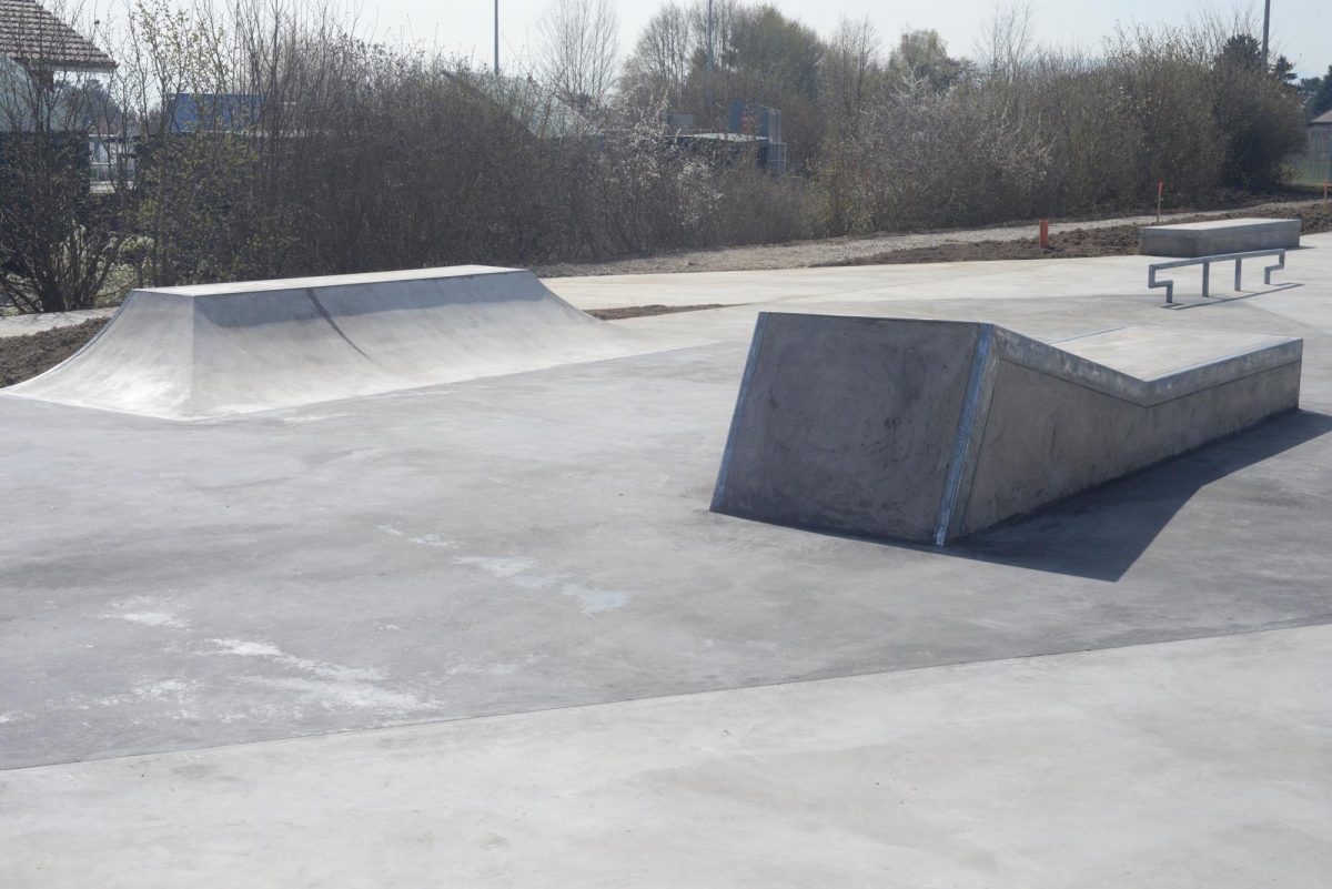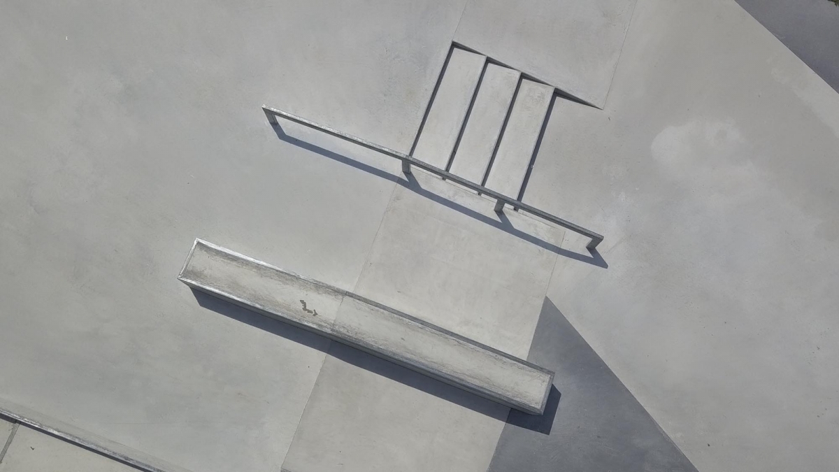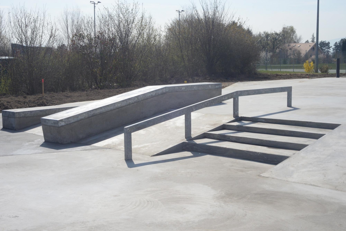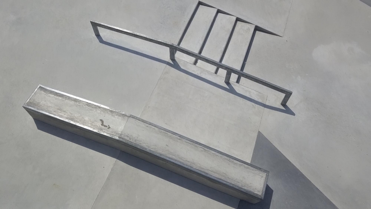 Auf der Plattform stehen eine Treppe mit Handrail und Hubba, sowie ein Manual Pad mit London Gap zur Verfügung. Auf der anderen Seite befinden sich eine 6 m breite Minirampe und eine Bank mit Wall Ride. Dazwischen stehen eine Pyramide, Curbs, ein Rail und ein A-Frame mit Gap. Die Elemente sind so angeordnet, dass fliessende Lines möglich sind und die Nutzung durch geübte Fahrer sowie Anfänger bestehen.