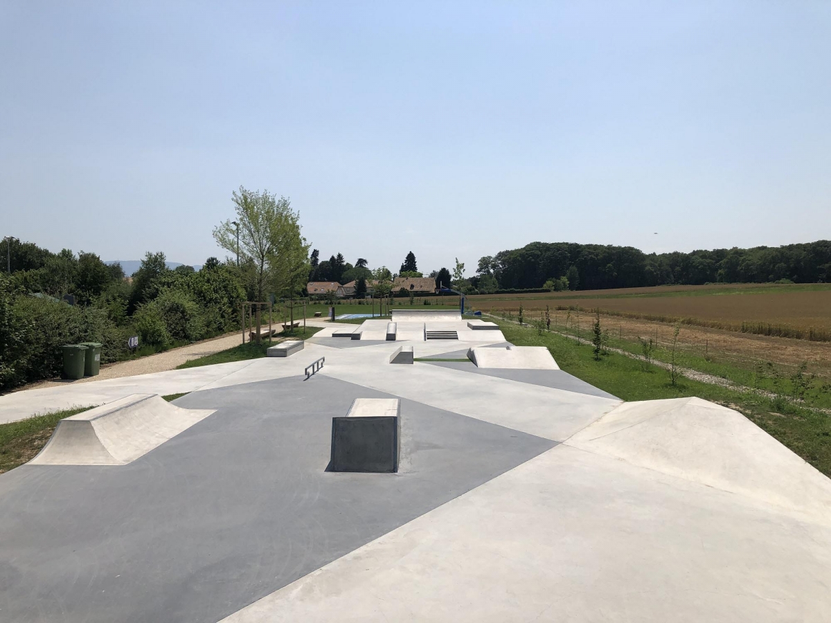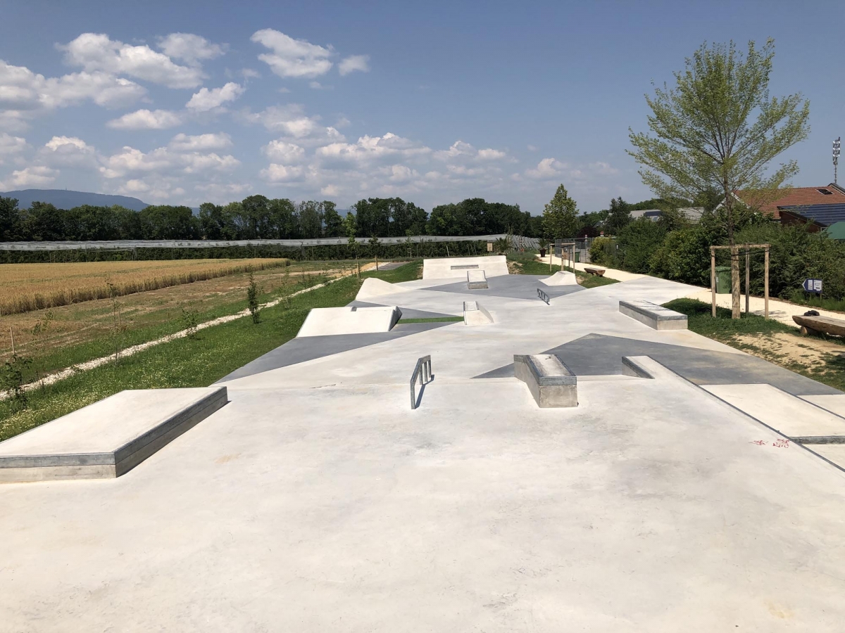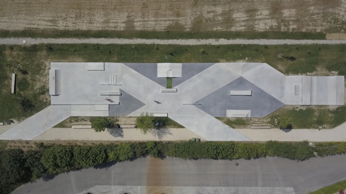 Der geometrische Aspekt des Skateparks wird durch schwarz eingefärbten Beton in den Diagonalen akzentuiert. Da sich der Hauptsitz der FIBA in Mies befindet, wurde auch neben dem Skatepark ein neues Basketball Feld „3×3“ errichtet. Das Projekt umfasst auch einen neuen Parkplatz, Grünflächen und einen Trinkbrunnen.