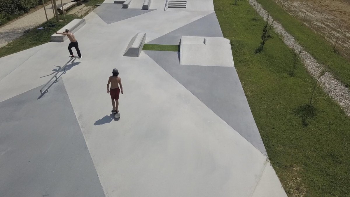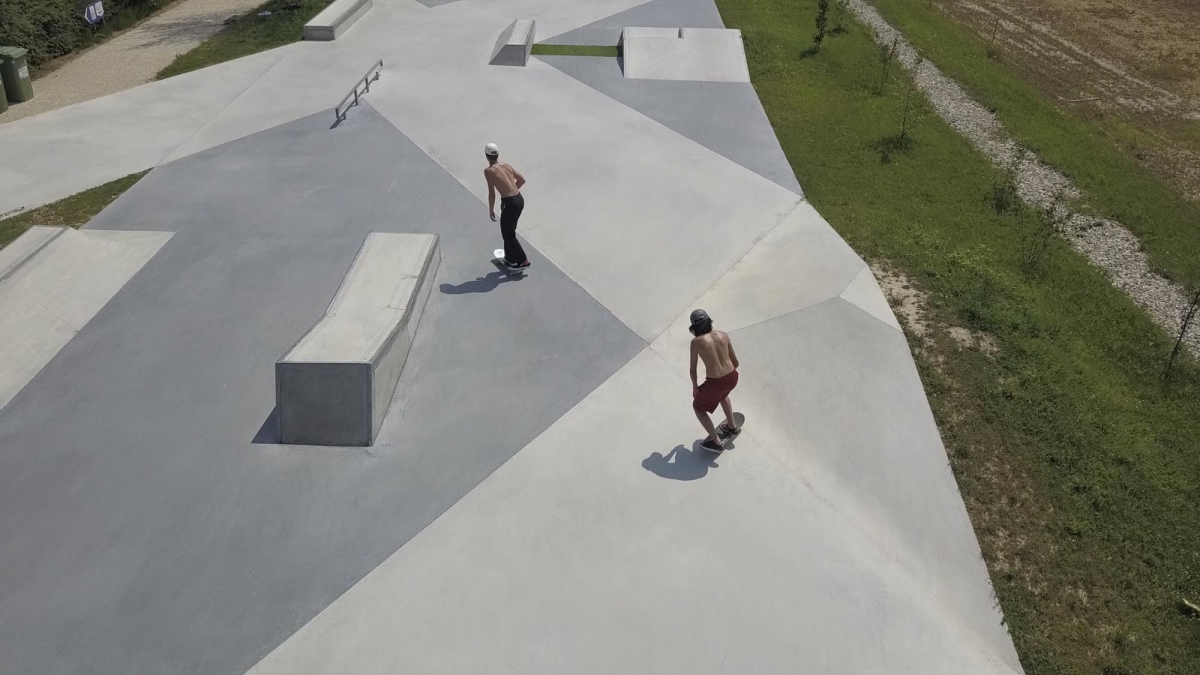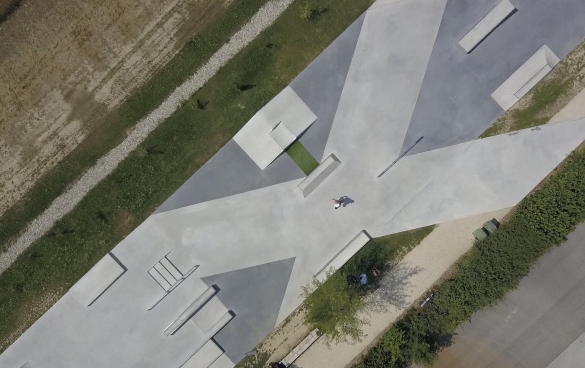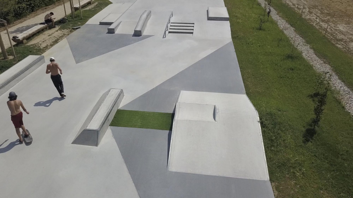 Der geometrische Aspekt des Skateparks wird durch schwarz eingefärbten Beton in den Diagonalen akzentuiert. Da sich der Hauptsitz der FIBA in Mies befindet, wurde auch neben dem Skatepark ein neues Basketball Feld „3×3“ errichtet. Das Projekt umfasst auch einen neuen Parkplatz, Grünflächen und einen Trinkbrunnen.