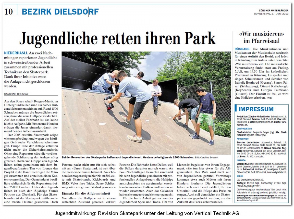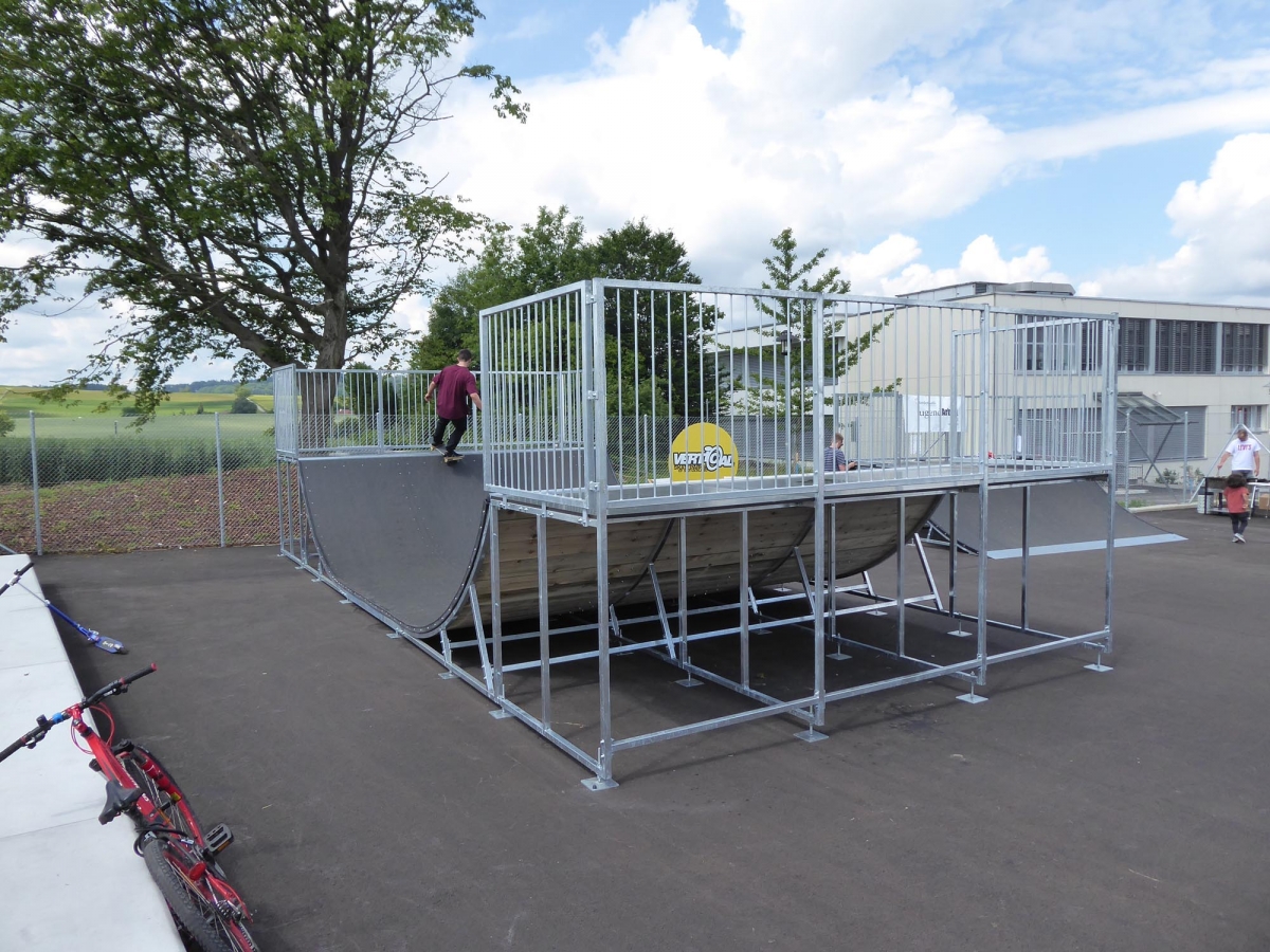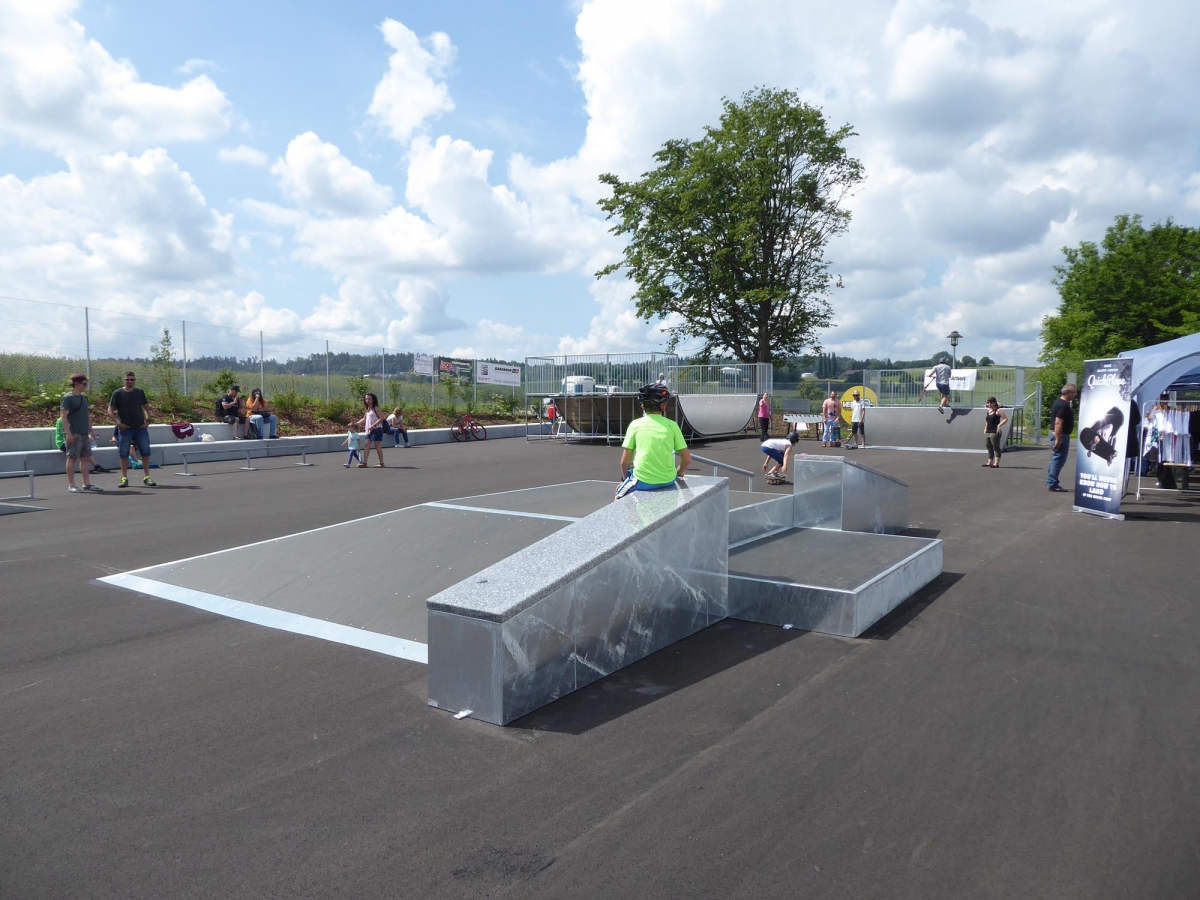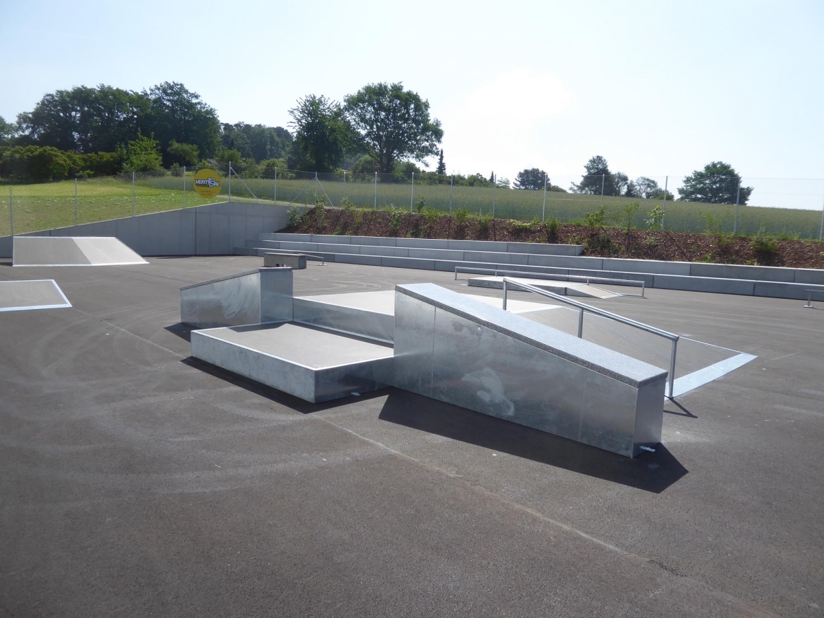Das Design der Module wurde durch Simon Stricker im Rahmen eines Workshops mit den lokalen Jugendlichen erstellt. Auf dem Skatepark befinden sich eine Minirampe, eine Pyramide mit Anlaufelementen und diverse kleine Obstakels. Die Skateanlagen wurden durch Vertical Technik AG hergestellt und geliefert.