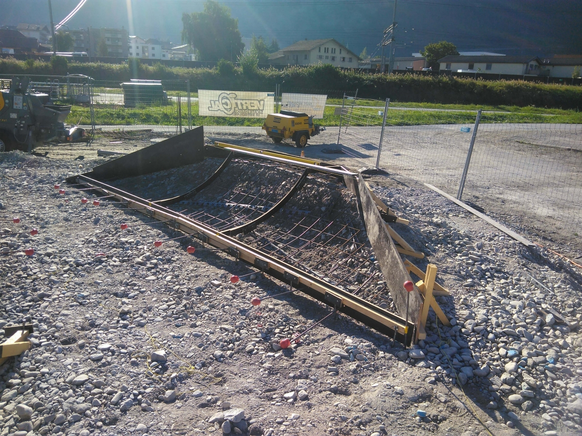 Die Metallteile wurden im Vorfeld in der Schlosserei von Vertical Technik AG hergestellt und verzinkt angeliefert. Die Feinformgebung und die Schalungsarbeiten wurden durch die Vertical Beton Crew ausgeführt. Anschliessend erfolgte der Beton-Test nach dem Rezept der Vertical, welcher positiv verlief. Somit konnten die Betonarbeiten am 9.9.2020 gestartet werden. Wir berichten wieder, sobald der Skatepark fertig gebaut ist.