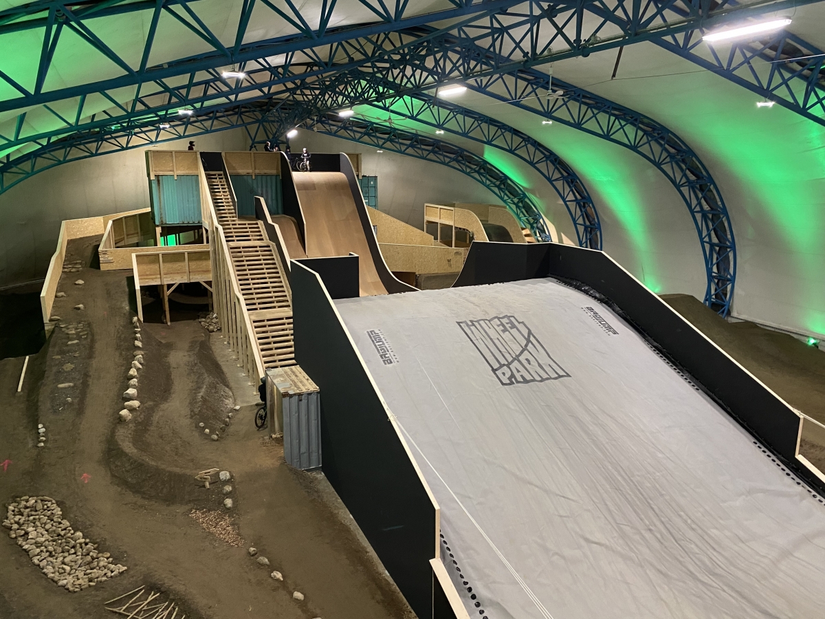 Mit dem «Wheel Park Sarnen» hat am Freitag, 18. Februar, ein neuer Indoor-Bikepark, an dem sich Vertical Technik beteiligt hat, seine Tore. Auf 2500 Quadratmeter umfasst der Wheel Park verschiedene Mountainbike-Trails, Obstacles und Kickers sowie einen Airbag. Vertical Technik hat den Big Air Inrun mit drei Schanzen, sowie die Jumpline mit einem Anlauf und zwei Kicker gebaut und vor Ort montiert. Die Kicker sind durch ein Rollensystem verschiebbar, so dass die Sprungdistanz eingestellt werden kann. Die neue Freizeitanlage ist für Bewegungsfans in der Region eine grosse Sache: Eine beheizte Lounge mit Blick auf die Trails und Sprünge, eine Outdoor-Bar im Sommer und ein Shop mit Bike-Equipment, Bike-Vermietung und Merchandising werden zudem für einen erlebnisreichen Aufenthalt sorgen. Der Wheel Park mit dem Kicker-Airbag-Angebot sei die erste Anlage dieser Art in Europa, wie es in einer Mitteilung heisst. Es ist nach Winterthur und Uetikon am See die dritte Indoor-Anlage in der Schweiz. Die Bilder der Eröffnung hat «Schumi» Vertical Technik zur Verfügung gestellt. Vielen Dank.