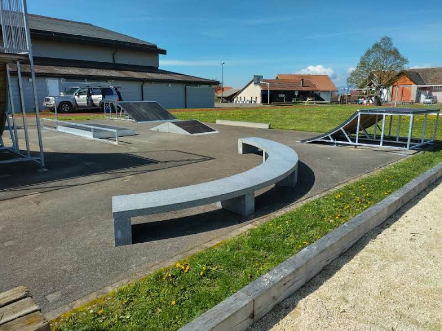 Die waadtländer Gemeinde Sullens konnte mit uns diesen Frühling ihr Skatepark erweitern. Neben der schon von uns im 2020 installierten Minirampe, konnten wir den Skatepark mit einem Kicker 400, eine Bank 950, eine Quarterpipe 950 und einer Wheelie Table 200 erweitern. Zudem konnten wir auch eine unserer beliebten Granit Curved Curb installieren, der sowohl als Sitzbank wie auch als Trick Element benutzt werden kann.