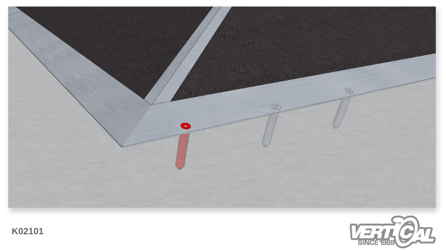 Minimiser l’espace entre le sol en asphalte et la tôle de transition en fixant la tôle de transition avec des vis à asphalte. Marquer, percer et chanfreiner la tôle de transition, soulever l’appareil avec un appareil de levage, percer l’asphalte, coller l’ancrage d’asphalte avec du mortier bitumineux bi-composant, abaisser à nouveau l’appareil et l’aligner sur les perçages, serrer les vis fraisées M10 x 50.
