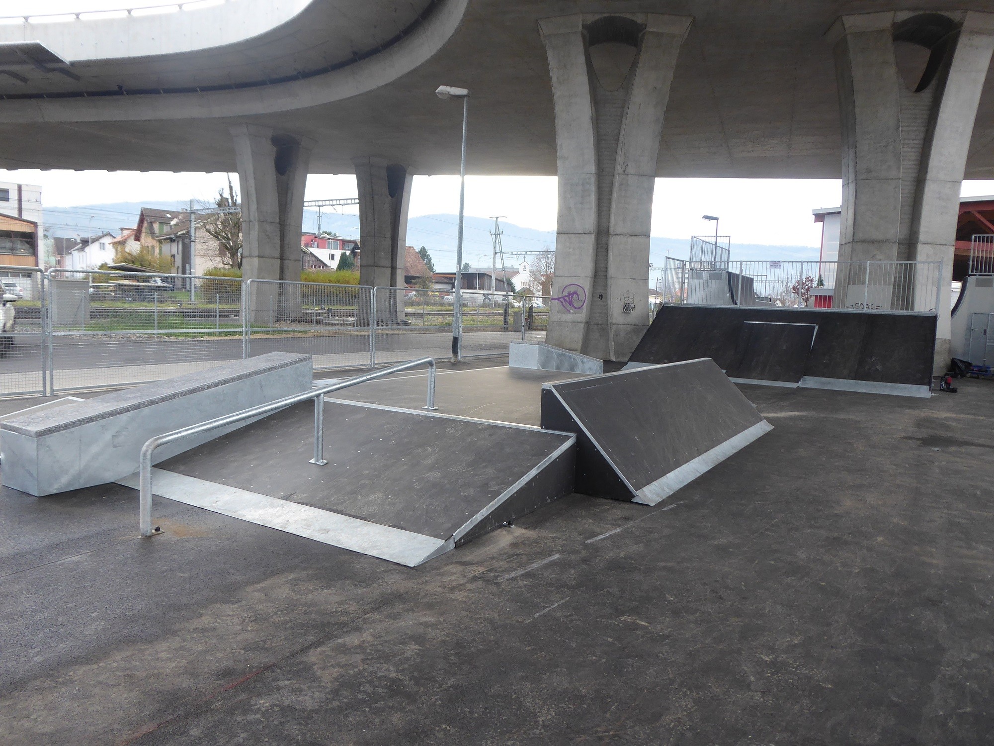Il pezzo forte è una mini rampa di 17 metri di larghezza e 1,6 metri di altezza. Sono state aggiunte due estensioni vert larghe 4,5 metri, che arrivano a 90° e sono alte 2,5 metri. Questa mini rampa offre una configurazione unica in Svizzera, che attira magicamente pattinatori di talento da tutto il mondo. Il progetto è stato definito durante gli incontri con gli skater locali.